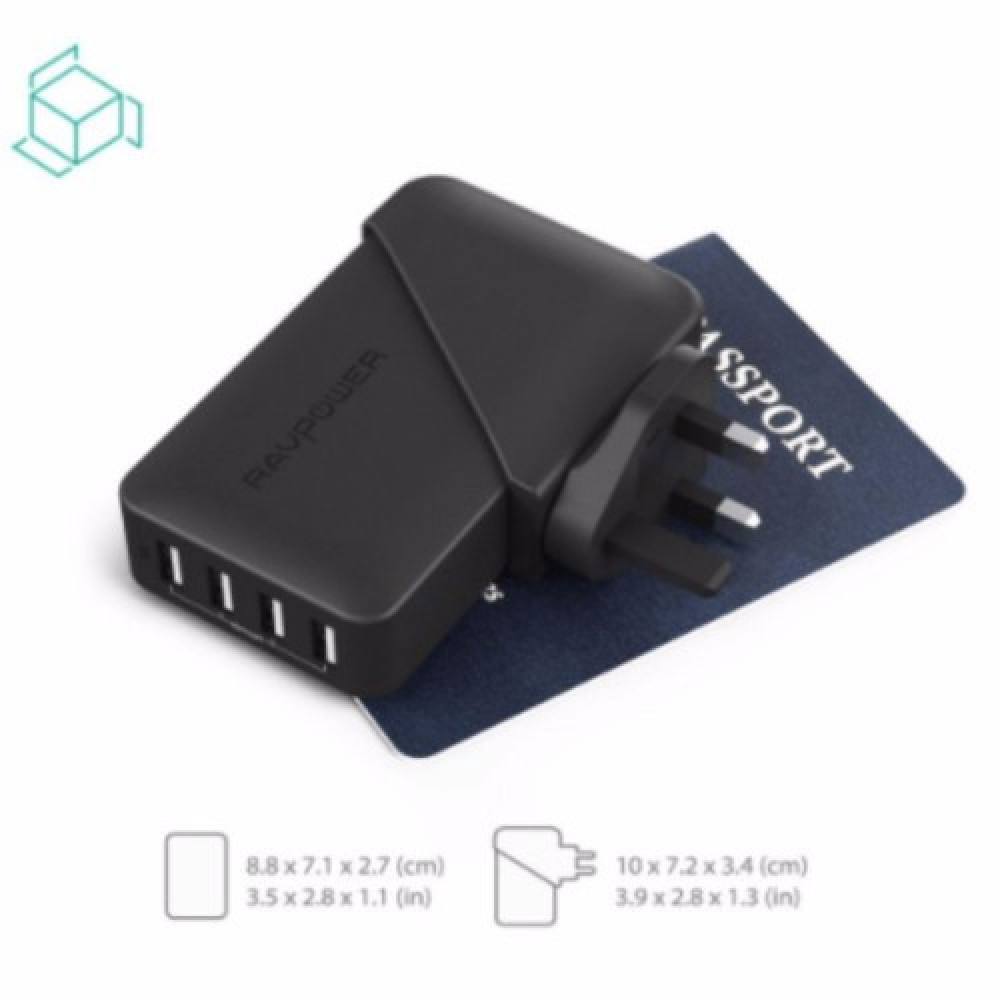 منصة راف باور شاحن جداري 4 منافذ وبأفياش متعددة وبقوة 40 واط